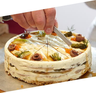 Ungezählte Rezepturen, kreative Kombinationen, neue Konsistenzen und die Entwicklung besonderer, herzhafter Tortenböden sind erforderlich.
